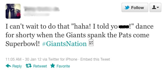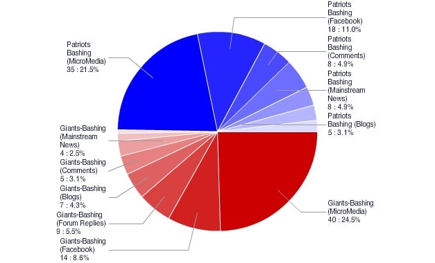 Who Talks the Best Trash? New York Giants vs. New England Patriots Sarah Gray Group Director, SEO & Digital Content Published: January 30, 2012 2 min read Categories: News Social Media: Super Bowl Negative Sentiment Analysis Who’s the best at trash talking – New Yorkers, or Bostonians? With Super Bowl Sunday coming up in just a few days, our office decided to take a look at the conversations happening around the big game and prove exactly how well each team’s fan base talks trash. To do this, we started the week running up to the Superbowl by examining conversations happening on Facebook, Twitter, blogs, forums, news sites, and other social hubs. We specifically were interested in how much (and how brutally) fans from each East Coast team were dissing and dismissing each other, so we first got to work identifying the most common insults. It turns out the most common football insults are pretty predictable. “Suck,” “lose,” “beat,” “hate,” as well as a few choice four-letter words turn out to be the most common themes in sports-themed internet dissing, so we formulated a study that looked for each team’s name in conjunction with these specific negative word associations. Also included in our net were team-specific put-downs, such as fans calling the New England Patriots the “Patsies,” or the New York Giants the “Midgets.” Forming these studies turns out to be a lot harder than we imagined, since most fans tend to mention both teams in the same sentence along with at least one negative keyword. That makes it hard to filter negative sentiments aimed towards one specific team, since comments like “Patriots suck! Giants will win!” looks similar in search to “Giants suck! Patriots will win!” This makes the ordering of keywords in these queries vital. It also turns out that quite a few people aren’t excited to see either team. We saw quite a few angry commenters upset that the Cowboys, 49ers, or Packers weren’t in the Superbowl. (We decided to count equal-opportunity trash-talkers for the purposes of our study.) On Day 1 of our study (the Monday before Superbowl Sunday), both fan bases seem to be laying down the smack talk with equal passion. Patriots fans appear to have a slight edge today, with ONE extra negative comment to take the win.Vengeful Patriots fans also seem to take to Twitter more than Giants fans, while more ruthless Giants fans than Patriots use Facebook. Stay tuned this week as the Superbowl XLVI gets closer – we’ll be watching to see how the insults start flying, and we’ll be sharing or favorites along with ongoing social insights. Day 2: Patriots Fans Ramp Up Insults As Super Bowl Gets Closer Day 3: Patriots Players Much More Interesting Than Giants Players… Day 4: All This Brady-Bashing Getting Out of Hand Day 5: Yeah, New Yorkers Really Are Rude
